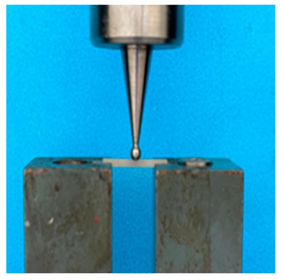 The specimens were tested for flexural strength using the 3-point bending test. The test was conducted using equipment from (Model M350-5CT; Testomatric, Rochdale, UK.) The load was applied with a 2 mm diameter sphere to the center of the specimen. The specimens were loaded till failure. The load at fracture was recorded for each group (Figure 5).