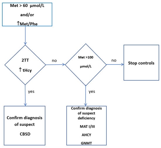 - Huemer, M.; Kožich, V. Newborn screening for homocystinurias and methylation disorders: Systematic review and proposed guidelines. J. Inherit. Metab. Dis. 2015, 38, 1007–1019. [Google Scholar] [CrossRef]