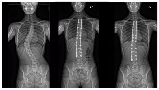 - Crostelli, M.; Mazza, O.; Mariani, M.; Mascello, D.; Iorio, C. Adolescent idiopathic scoliosis correction by instrumented vertebral arthrodesis with autologous bone graft from local harvesting without bone substitute use: Results with mean 3 year follow-up. Eur. Spine J. 2018, 27, 175–181. [Google Scholar] [CrossRef]