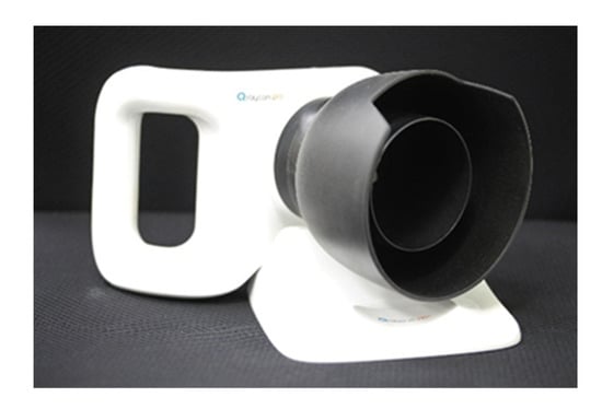 Oral hygiene status was also evaluated using a QLF device. Recently, QLF technology has been introduced. By using QLF technology, dental plaques can be visualized as red fluorescence emitted from porphyrins, which are bacterial metabolites inside the biofilm [18,19,20]. By using this technology, a portable camera-type device called a Q-ray cam (AIOBIO, Seoul, Republic of Korea) (Figure 4) was developed so that patients could easily detect dental plaque by themselves. The Q-ray cam can be used in oral health education to provide visual feedback and motivation to children. Several recent studies on oral health education have shown that QLF technology could be useful for improving the oral hygiene status and attitude toward oral hygiene of children and adolescents [21].