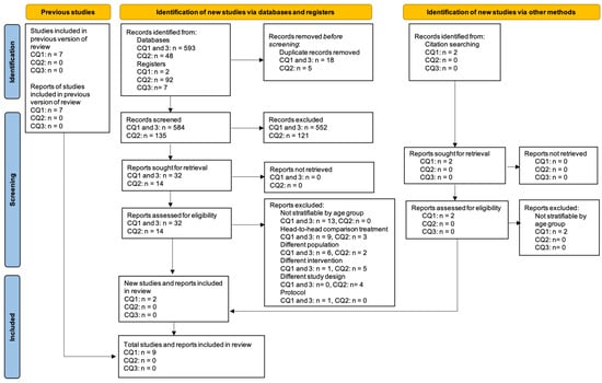 - Cumpston, M.J.C. Chapter IV: Updating a Review. In Cochrane Handbook for Systematic Reviews of Interventions Version 6.3 (Updated February 2022); Higgins, J.P.T., Thomas, J., Chandler, J., Cumpston, M.L.T., Page, M.J., Welch, V.A., Eds.; Cochrane: London, UK, 2022. [Google Scholar]