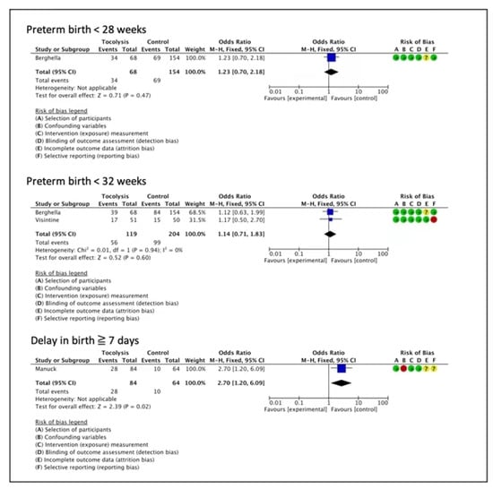 Tocolytics compared to placebo or no treatment—extreme prematurity (RCTs) [27,28,29].