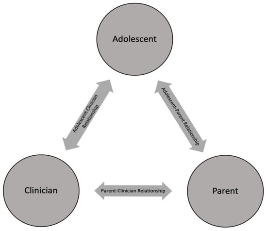 There has been a global movement towards engagement of key stakeholders, including patients, caregivers, and clinicians in the research process. In pediatric research, involvement of stakeholders in research can impact adolescent and pediatric outcomes, as well as improve the engagement of people from underserved communities [,,,,]. Community advisory boards (CABs) are a useful mechanism to collaborate with stakeholders. CABs have been used to strengthen academic–community partnerships and promote the needs of underserved communities in clinical and research settings [,,,]. Meaningful use of advisory boards can lead to collaborative development of research questions, approaches to recruitment and data, as well as guide interpretation and study dissemination [,,,]. Given their intended purpose and applications, CABs may be an appropriate vehicle for facilitating research engagement with the triad of stakeholders critical in adolescent healthcare: adolescents, parents, and clinicians [,,]. The interactions between the different arms of the triad are shown in Figure 1.