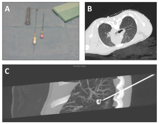 - Krüger, K.; Eyl, G.; Morgenroth, C.; Schneider, P.; Hoelscher, A.; Lackner, K. Erfolgs-und Komplikationsrate der CT-gesteuerten Markierung pulmonaler Rundherde mittels Spirale vor videoassistierter thorakoskopischer chirurgischer Resektion (VATS). Fortschr. Röntgenstr. 2006, 178, 1250–1254. [Google Scholar] [CrossRef]