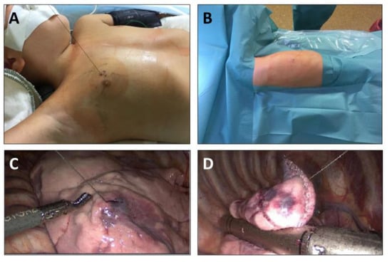 - Paridaa, L.; Fernandez-Pinedaa, I.; Uffmana, J.; Davidoff, A.M.; Gold, R.; Rao, B.N. Thoracoscopic resection of computed tomography-localized lung nodules in children. J. Pediatr. Surg. 2013, 48, 750–756. [Google Scholar] [CrossRef]