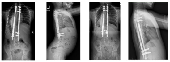 - Tahir, M.; Mehta, D.; Sandhu, C.; Jones, M.; Gardner, A.; Mehta, J.S. A comparison of the post-fusion outcome of patients with early-onset scoliosis treated with traditional and magnetically controlled growing rods. Bone Jt. J. 2022, 104, 257–264. [Google Scholar] [CrossRef] [PubMed]
