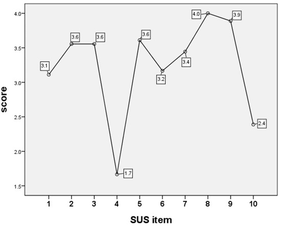 Analysis of variance (ANOVA) analyzed the items of System Usability Scale (SUS) scores shown in Table 1.