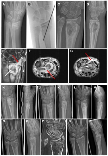 - Özkan, S.; Westenberg, R.F.; Helliwell, L.A.; Mudgal, C.S. Distal Radius Fractures: Evaluation of Closed Reduction and Percutaneous Kirschner Wire Pinning. J. Hand Microsurg. 2018, 10, 134–138. [Google Scholar] [CrossRef]