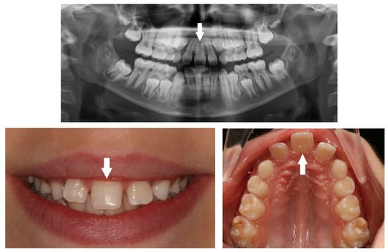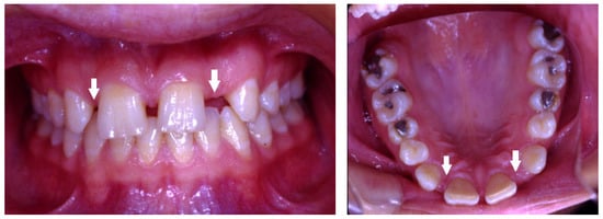 - Kokich, V.O. Congenitally missing teeth: Orthodontic management in an adolescent patient. Am. J. Orthod. Dentofac. Orthop. 2002, 121, 594–595. [Google Scholar] [CrossRef]