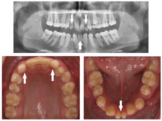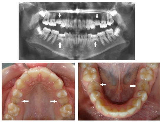 - Abu-Hussein, M.; Watted, N.; Zere, E. Nonsyndromic oligodontia in permanent dentition: Three rare cases. IOSR J. Dent. Med. Sci. 2015, 14, 79–83. [Google Scholar]