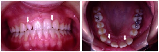 - Yonezu, T.; Hayashi, Y.; Sasaki, J.; Machida, Y. Prevalence of congenital dental anomalies of the deciduous dentition in Japanese children. Bull. Tokyo Dent. Coll. 1997, 38, 27–32. [Google Scholar]