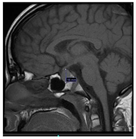 - Sapkota, S.; Karn, M.; Sapkota, S. Pituitary hyperplasia in childhood primary hypothyroidism: A review. Child’s Nerv. Syst. 2021, 37, 749–762. [Google Scholar] [CrossRef] [PubMed]