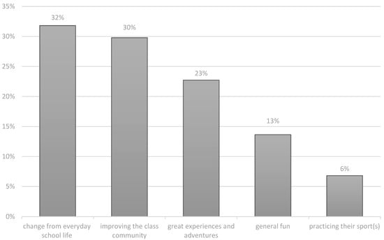 The most frequently mentioned answer in this category was a change from everyday school life, with 31.9%: “As motivation and reward for school, afterwards it is easier again.”–M3. “It is a bit like a holiday from school and relaxing.”–K3.