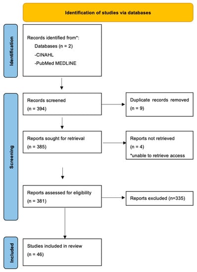 In this scoping study, a search of PubMed MEDLINE and CINAHL was performed on 1 March 2023 using the keywords (Figure 1):