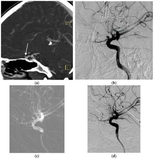 - Takemoto, K.; Tateshima, S.; Golshan, A.; Gonzalez, N.; Jahan, R.; Duckwiler, G.; Vinuela, F. Endovascular treatment of pediatric intracranial aneurysms: A retrospective study of 35 aneurysms. J. Neurointerv. Surg. 2014, 6, 432–438. [Google Scholar] [CrossRef]