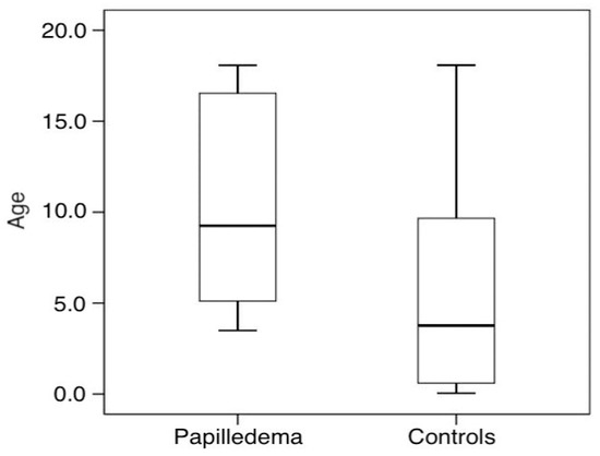 The incidence of papilledema was statistically significantly higher in older children (p = 0.037) (Table 6 and Figure 1).