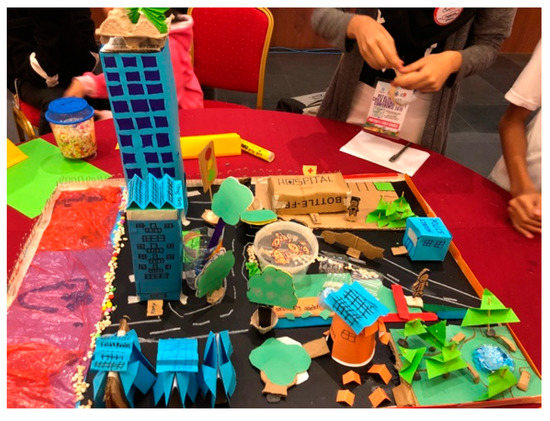 The second activity involved a child moderator and two child panellists in two forums named “Towards Active Child Participation” and “No Child Left Behind.” The remaining panellists were adults. The third and last exercise was the construction of a 3D city model utilising low-cost materials such as plastic bottles, cardboard, and old paper (Figure 8). Interspersed between each activity were energizers and performances by the other children. The culmination of this conference occurred when the mayor officially appointed the 32 children as child councillors for the period of 2019–2021.