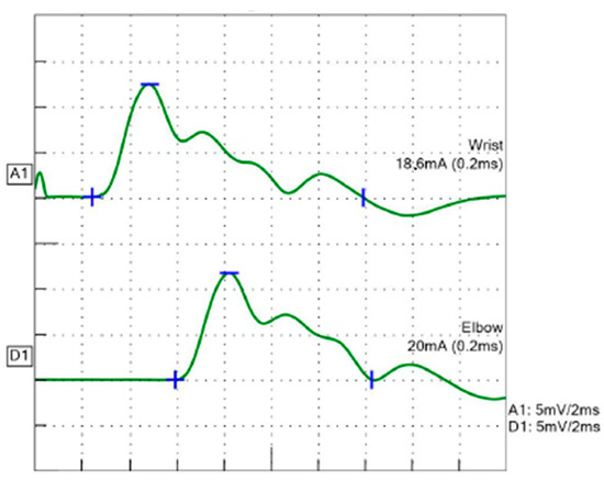 - Kumar, R.S.; Kuruvilla, A. Repetitive compound muscle action potentials in electrophysiological diagnosis of congenital myasthenic syndromes: A case report and review of literature. Ann. Indian Acad. Neurol. 2010, 13, 139–141. [Google Scholar] [CrossRef] [PubMed]