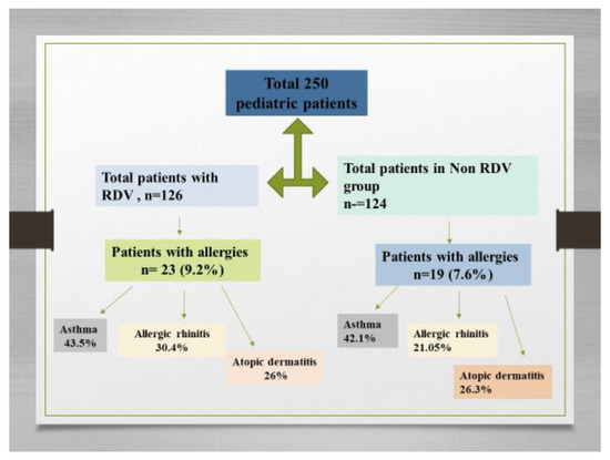 Flow diagram showing the enrollment of patients and allocation to RDV group and non-RDV group and the pediatric patients with allergies.