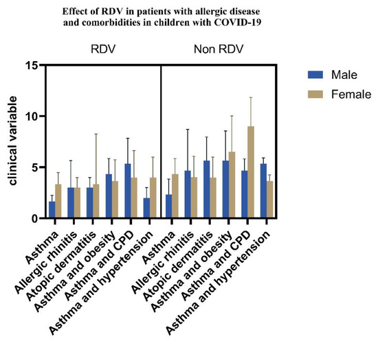 We performed gender analysis of the clinical variables in patients with allergies and groups with comorbidities when RDV was administered (See Figure 9).