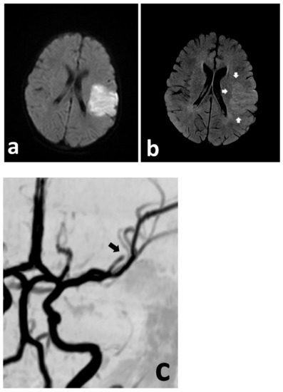 - Chang, J.; Bulwa, Z.; Breit, H.; Cherian, L.J.; Conners, J.J.; Song, S.Y.; Dafer, R.M. Acute Large Vessel Ischemic Stroke in Patients With COVID-19-Related Multisystem Inflammatory Syndrome. Pediatr. Neurol. 2022, 126, 104–107. [Google Scholar] [CrossRef]