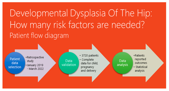 A retrospective single-center multifactorial study was conducted between January 2019 and March 2022. The study included children aged less than 4 months old, referred to the clinic for pediatric orthopedic examination and ultrasonography of the hip. All the patients were referred for examinations either as a standard guideline for all newborn babies in Romania with at least one risk factor for DDH, carried out in the first 4 months of life, or because of reported clinical signs observed by the neonatologist of the parents.
