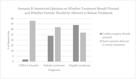 After Baby Sam received the diagnosis of a STRA6-related disorder, 95% (n = 38) of respondents felt that Sam’s parents should be able to refuse cardiac surgery for their child. All but one intensivist who felt surgery should not proceed thought that Sam’s parents should have the right to refuse surgery.