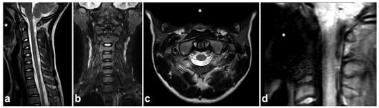 - Lee, R.P.; Zhou, N.J.; Hidalgo, J.; Titsworth, W.L.; Uribe-Cardenas, R.; Chowdhury, R.; Chun, Y.; Nasr, I.; Stewart, F.D.; Sponseller, P.; et al. Weighing the Risk Profile of Cervical Spine MRI in Evaluating Pediatric Cervical Spine Injuries. Pediatr. Neurosurg. 2022, 57, 314–322. [Google Scholar] [CrossRef]