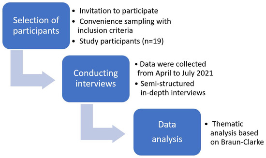 The design of the study was constructed by this article’s authors (Figure 1). The permission to conduct this study was obtained from the Ethics Committee for Biomedical Research (No. BE-2-41; 4 April 2021). The interviews and their content were anonymous, written informed consent of participants and their parents was required. Invitations to participate in the study were disseminated on social media sites, weblogs, and organizations of adolescents and their parents. The inclusion criteria were: