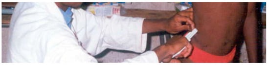 The skinfold was measured on the ilio-axilla line superior to the iliocristale, with the arm abducted horizontally across the chest as shown in Figure 4 [17].