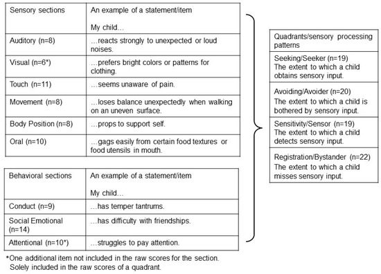 - Licciardi, L.; Brown, T. An overview & critical review of the Sensory Profile—Second edition. Scand. J. Occup. Ther. 2021, 1–13. [Google Scholar] [CrossRef]
