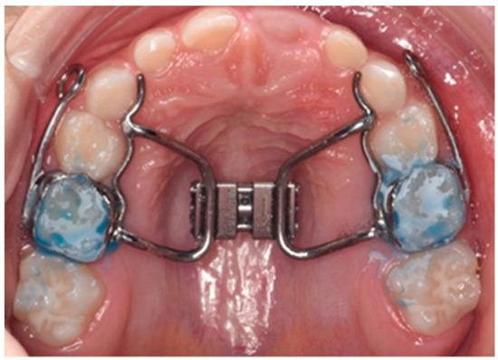 Figure 3. Rapid palatal expander with bands on deciduous molars and arms for Delaire.
