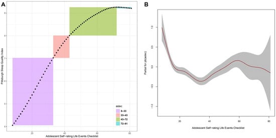 It is useful to distinguish the two-way relationships between adverse events and sleep quality. This study shows adverse events have a nonlinear effect on sleep quality: as adverse events accumulate, sleep quality declines. However, the other way around is not guaranteed: when adverse events subside, sleep quality may not return to normal. There are many types of adverse events. Acute stress disorder and, consequently, poor sleep quality can be caused by an acute health condition or injury, and once these events pass, sleep health will eventually return to normal. However, more severe adverse events may have lasting repercussions and cause psychological trauma, and as time goes on, people, particularly children, who encounter such events may develop chronic sleep disorders. As a result, adverse events can become subconscious in one’s thinking and may never fade. For example, children who grow up in unfavorable family environments (e.g., substance abuse or divorce) may suffer from sleep disorders into adulthood [31]. Children who have been sexually abused are often forced to endure a lifetime of victimization, and even 10 years after the occurrence of damaging events, severe sleep disorders persist [32]. Our findings should strongly alert family members, schoolteachers, and clinicians to take decisive action when suspicious behavior patterns (e.g., insomnia, daytime sleepiness) emerge among children and adolescents to help mitigate adverse events from becoming long-lasting traumas.