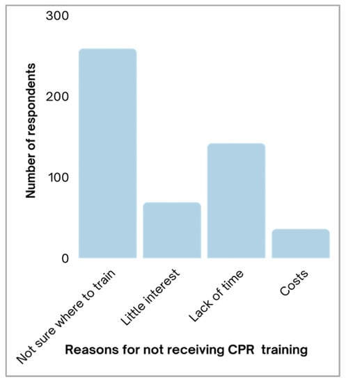 Graphic bars reveal the different reasons for not having received CPR training previously among 506 CPR-untrained respondents.
