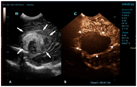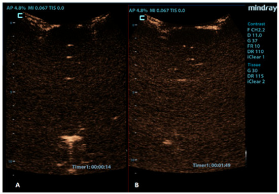 - Piscaglia, F.; Nolsøe, C.; Dietrich, C.F.; Cosgrove, D.O.; Gilja, O.H.; Bachmann Nielsen, M.; Albrecht, T.; Barozzi, L.; Bertolotto, M.; Catalano, O.; et al. The EFSUMB Guidelines and Recommendations on the Clinical Practice of Contrast Enhanced Ultrasound (CEUS): Update 2011 on non-hepatic applications. Ultraschall Med. 2012, 33, 33–59. [Google Scholar] [CrossRef]