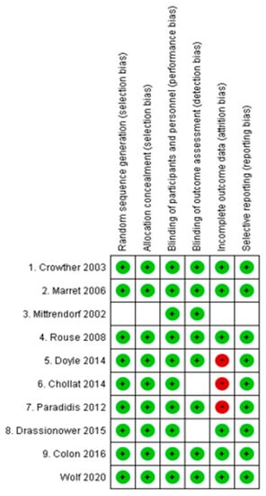 Random sequence was generated by computer in the nine studies. In Mittrendorf 2002, the randomization method was unknown.