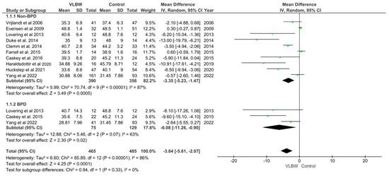 | Haraldsdottir et al., 2020 [46] | <1500 g | - | 24–28 | 70.1 ± 13.3 | 75.6 ± 0.7 |