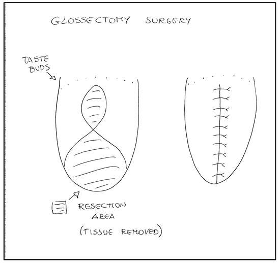 - Balaji, S.M. Reduction glossectomy for large tongues. Ann. Maxillofac. Surg. 2013, 3, 167–172. [Google Scholar] [CrossRef] [PubMed]