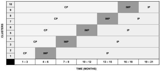 Visual overview of the study design. CP = control period; IMP = implementation period; IP = intervention period.