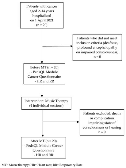 - Da Silva Santa, I.N.; Schveitzer, M.C.; Dos Santos, M.M.; Ghelman, R.; Filho, V.O. Music interventions in pediatric oncology: Systematic review and meta-analysis. Complement. Ther. Med. 2021, 59, 102725. [Google Scholar] [CrossRef] [PubMed]