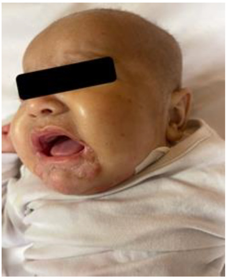 There are only a few cases, published many years ago, describing severe skin lesions in patients affected by CTLN1 [2,3]. At that time, NBS for citrullinemia was still not available, and it was more difficult to diagnose this disease early. For this reason, it was more likely that a patient with an inborn error of metabolism presented with acute and severe disease, including uncommon manifestations such as skin involvement. This was the case of the two children described by Thoene et al. in 1986 and Goldblum et al. in 1977. These children presented, before the diagnosis of citrullinemia, with cutaneous findings similar to those shown by our patient.