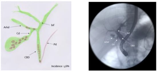 As the incidence of biliary pathology rises, so does the request for cholecystectomy and consequently the number of possible complicated interventions [,]. Currently, laparoscopy is the technique of choice for performing cholecystectomy: less pain, quicker recovery, better aesthetic results are the well-known advantages associated with this minimally invasive approach []. After its introduction, concerns arose over increased rates in bile duct injury (BDI), and thus the concept of the critical view of safety (CVS) has been proposed []. The CVS is an anatomical identification technique that aims primarily at identifying the cystic duct and artery []. It is part of a larger concept, together with the six-step program of The Society of American Gastrointestinal and Endoscopic Surgeons (SAGES): the Culture of Safety in Cholecystectomy (COSIC), which imposes safety first. This also requires understanding aberrant anatomy and, when needed, to complete the operation with a safe method other than total cholecystectomy [].