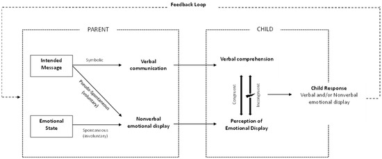 Regardless of whether the information communicated is congruent or incongruent, children interpret (or misinterpret) their parents’ verbal and nonverbal communication and respond through their own verbal communication and/or nonverbal emotional display. As depicted in the model, we propose that the child’s response serves as a feedback loop, influencing the ongoing nature of the parent’s message. For example, parents may tailor their next message accordingly, if they observe that the child is showing signs of, or uses language consistent with, negative emotions.