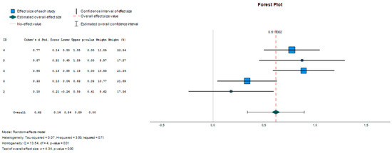 A meta-analysis was conducted, continuing with the raw data available in each of the publications. A random-effects model was chosen for a meta-analysis. The random-effects model operates on the premise that the true effect may vary from one study to another due to differences (heterogeneity) among studies [77].