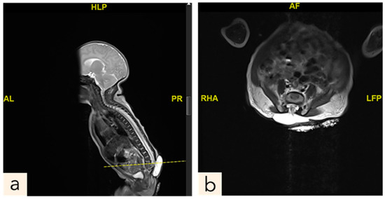 - Barbara, T.; Tomas, A.L.; Monique, O.M.; Isadora, F.T.; Emi, F.; Laila, C.A. A Practical Approach to Diagnosis of Spinal Dysraphism. Radiographics 2021, 41, 559–575. [Google Scholar]