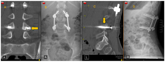 - Bronsard, N.; Boli, T.; Challali, M.; De Dompsure, R.; Amoretti, N.; Padovani, B.; Bruneton, G.; Fuchs, A.; De Peretti, F. Comparison between percutaneous and traditional fixation of lumbar spine fracture: Intraoperative radiation exposure levels and outcomes. Orthop. Traumatol. Surg. Res. 2013, 99, 162–168. [Google Scholar] [CrossRef]