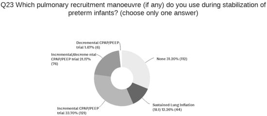 During stabilization, 69% of the units use a pulmonary recruitment maneuver. DR recruiting maneuvers are reported in Figure 3.