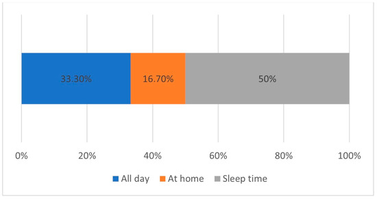 In terms of the frequency of pacifier use (Figure 4), 50% of the patients reported using it only during the night.