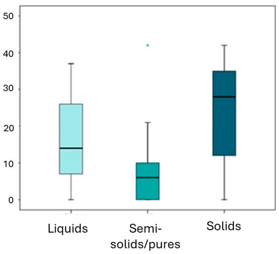 The study revealed that half of the sample consumed solids more than 28 times per week (median = 28), and 25% of the participants indicated consuming solids more than 35 times per week.
