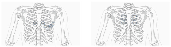 Since the pathophysiological substrate seems to be located at the level of the right ventricular outflow tract, to increase the sensitivity of the ECG, it may prove necessary to place leads V1–V2 in the second and third intercostal space parasternal right and left, i.e., in correspondence with the RVOT [1] (Figure 2).